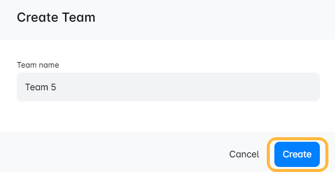 الخطوة 2: أدخل اسمًا لفريقك الجديد واضغط على 'إنشاء'. بهذه البساطة، فريقك الجديد جاهز للانطلاق! 🎉