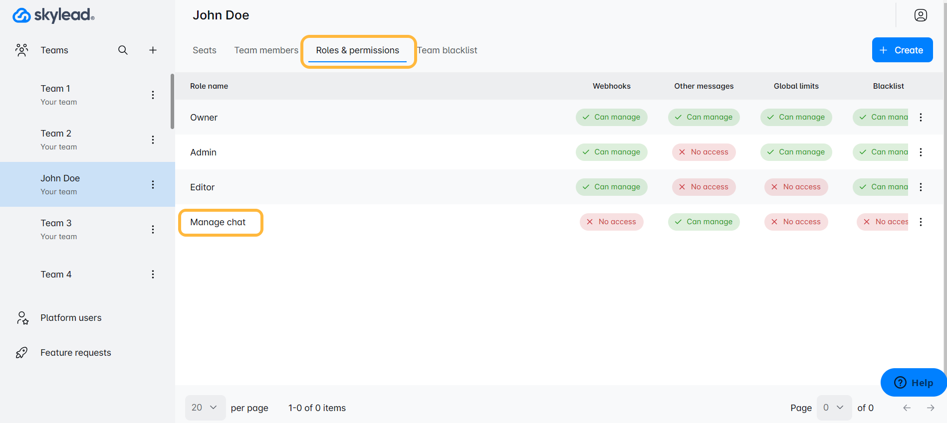 توجه إلى 'الأدوار والأذونات'، اضغط على 'إنشاء' واختر الأذونات مثل إدارة الحملات، التعامل مع الرسائل، أو القائمة السوداء. يمكنك حتى تعيين الأدوار للعرض فقط للوصول المراقب. مع الأدوار المخصصة، يمكنك ضمان أن كل عضو في الفريق لديه الأدوات الصحيحة ومستوى الوصول المناسب، مما يعزز الكفاءة والتنظيم. استمتع بالمرونة لتشكيل أدوار الفريق وفقًا لمواصفاتك الدقيقة!✈️🌟