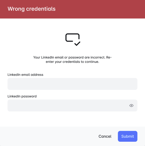 هل تواجه حالة بيانات اعتماد خاطئة؟ هذا يعني عادةً أن بريدك الإلكتروني أو كلمة المرور لا تتطابق مع سجلاتنا. انقر على الزر الأحمر، وأعد إدخال تفاصيلك بعناية، ثم أرسلها. إذا حدث ذلك أثناء عملية الإعداد، قم بتحديث إدخال بيانات الاعتماد الخاصة بك. للحصول على مساعدة إضافية، دعم Skylead هنا. إليك الوصول السلس! 🌐✨