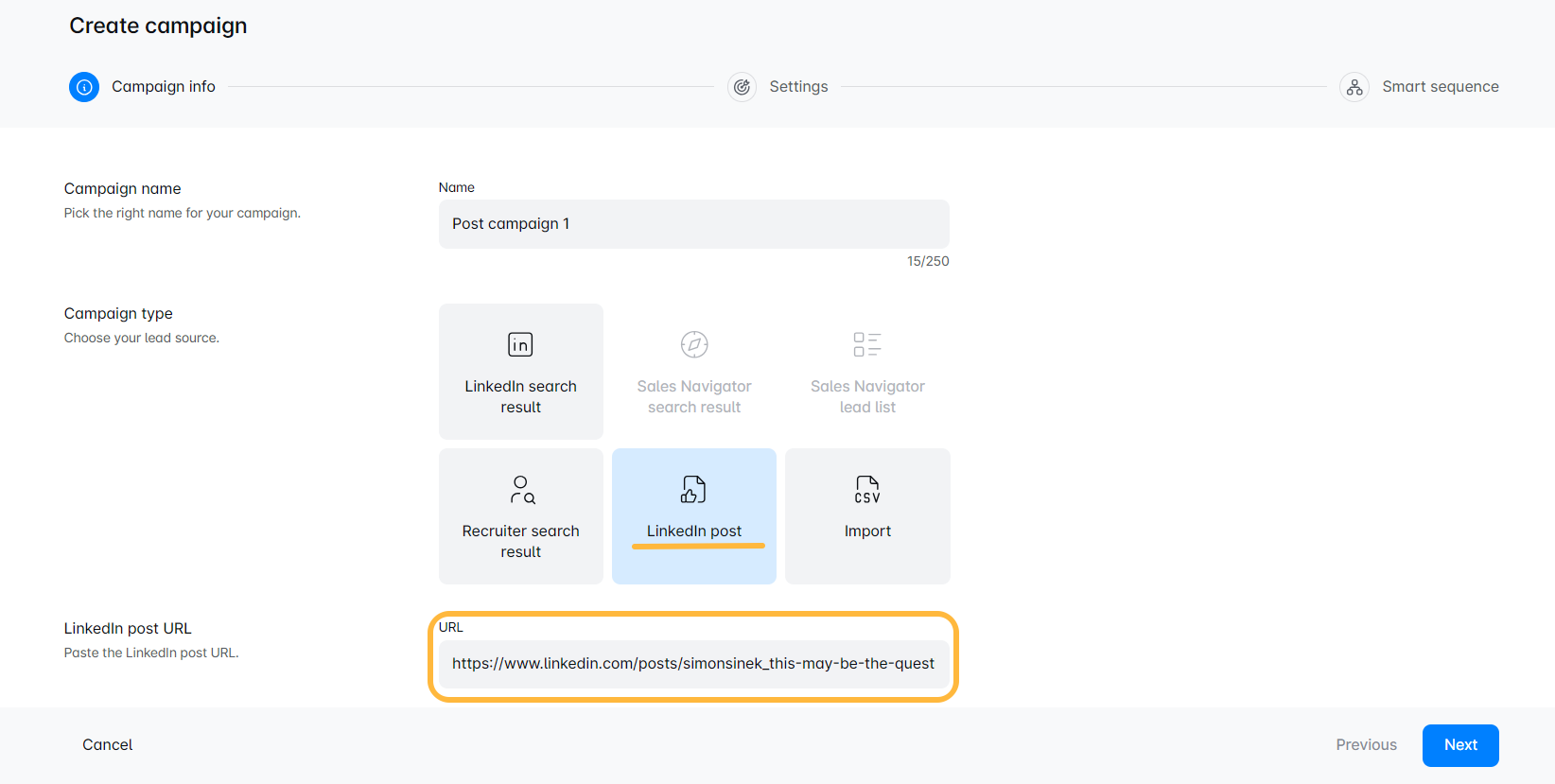 At målrette personer, der engagerer sig med specifikke LinkedIn-opslag, er yderst effektivt, fordi disse individer allerede viser interesse for emner, der er relevante for dit produkt eller din service. Ved at engagere dig med dem gennem en Post Engagement-kampagne forbinder du dig med et varmt publikum—mennesker, der er aktive, nysgerrige og sandsynligvis vil reagere positivt på din outreach. Dette øger chancen for meningsfulde interaktioner og konverteringer, da du når ud til leads, der allerede er engageret i samtaler inden for din branche eller interesseområde.