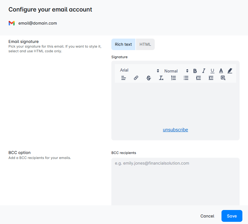 💡 Pro tip 1: Set up a different signature for each email account you add. This will add up to personalization and better deliverability.