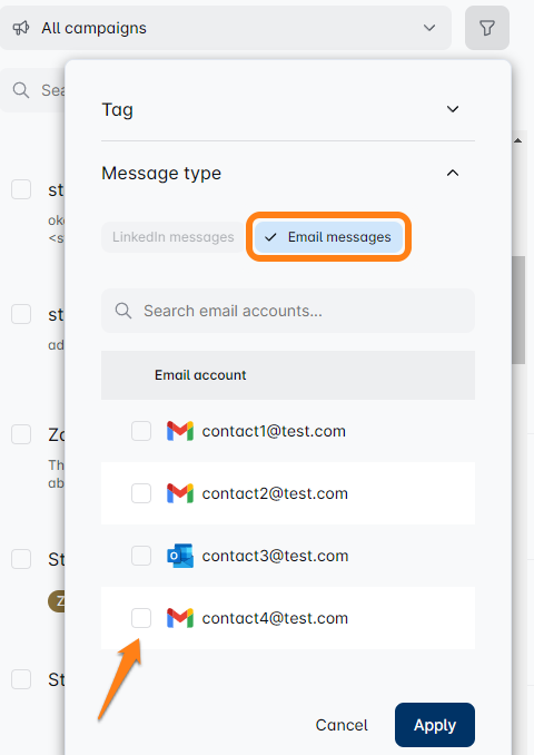 - When using the Campaign Filter, if you've chatted with a lead across different channels like LinkedIn, Sales Navigator, or Email, the Smart Inbox lets you effortlessly switch between these channels right within the inbox. It’s like having a remote control for your conversations!