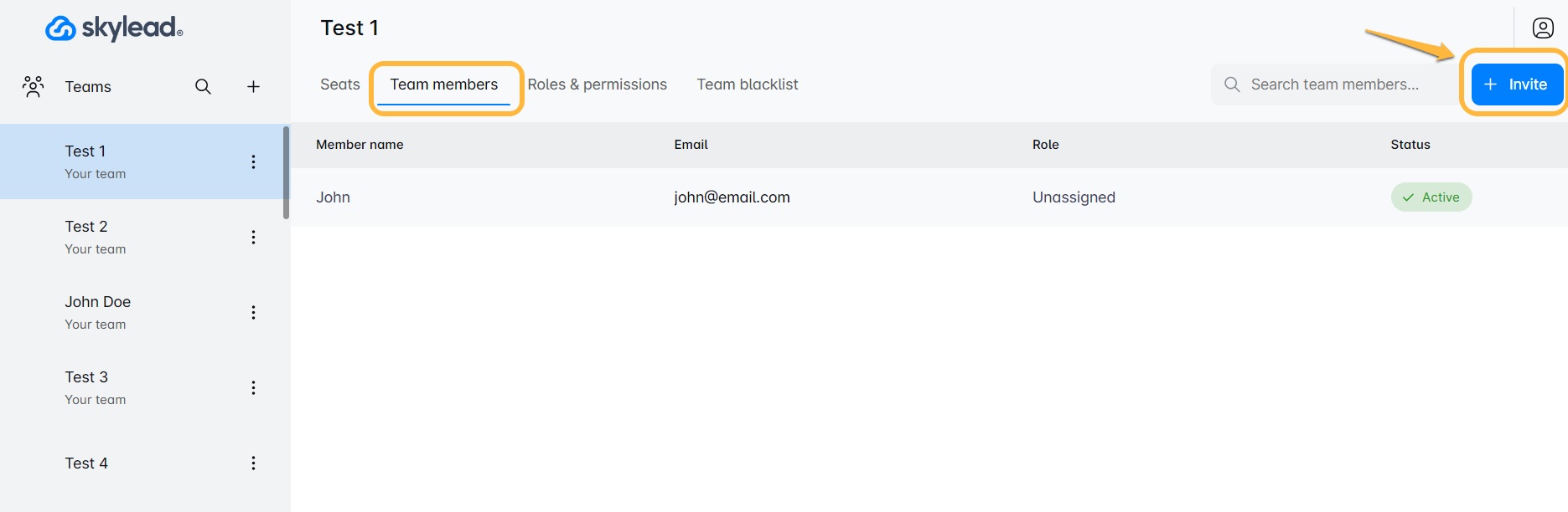 - For those managing multiple teams, choose the team from the left side menu and than select 'Team members' tab of that selected team. This is your gateway to growing your awesome crew! 🌱
