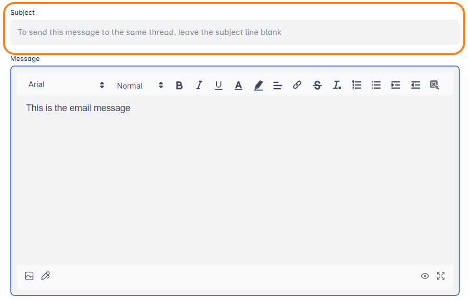 Si deseas enviar correos electrónicos en el mismo hilo, deja la línea de Asunto en blanco.