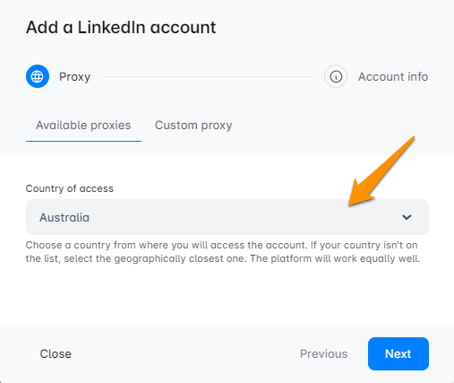 🌍 प्रो टिप: LinkedIn से कनेक्ट करते समय, एक प्रॉक्सी स्थान चुनें जो उस स्थान से मेल खाता हो जहां से आप आमतौर पर LinkedIn का उपयोग करते हैं ताकि सब कुछ संगत रहे।