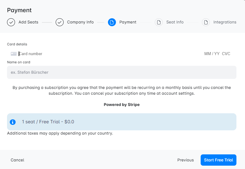 नोट: मुफ्त परीक्षण केवल एक खाते को कवर करता है। यदि आप अधिक टीम के सदस्यों को जोड़ते हैं, तो अतिरिक्त शुल्क होंगे, इसलिए इसे ध्यान में रखें। 💡