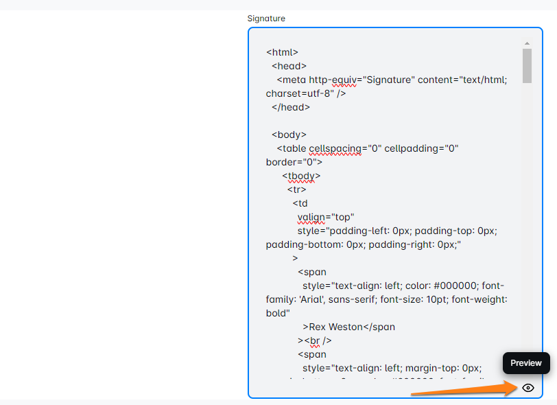 एक बार जब आपने HTML विकल्प चुना है, तो अपने हस्ताक्षर के साथ अपना HTML कोड पेस्ट करें। इसे अंतिम रूप देने से पहले पूर्वावलोकन की जांच करना और कोई भी समायोजन करना न भूलें। जब आप संतुष्ट हों, तो इसे सहेजने के लिए 'सहेजें' पर क्लिक करें!