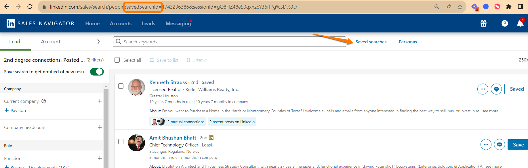 Skylead में एक सहेजे गए खोज को नियमित खोज में बदलने के लिए एक त्वरित तरकीब यहाँ है! अपनी सहेजी गई खोज खोलें, कोई भी फ़िल्टर जोड़ें और हटाएं, और "savedSearch" के बिना अपडेटेड URL को कॉपी करें। अब, आपके पास कस्टम ट्वीक के लिए तैयार एक नियमित खोज है। खुश खोज, और आपकी अभियान चमकें! 🔍✨