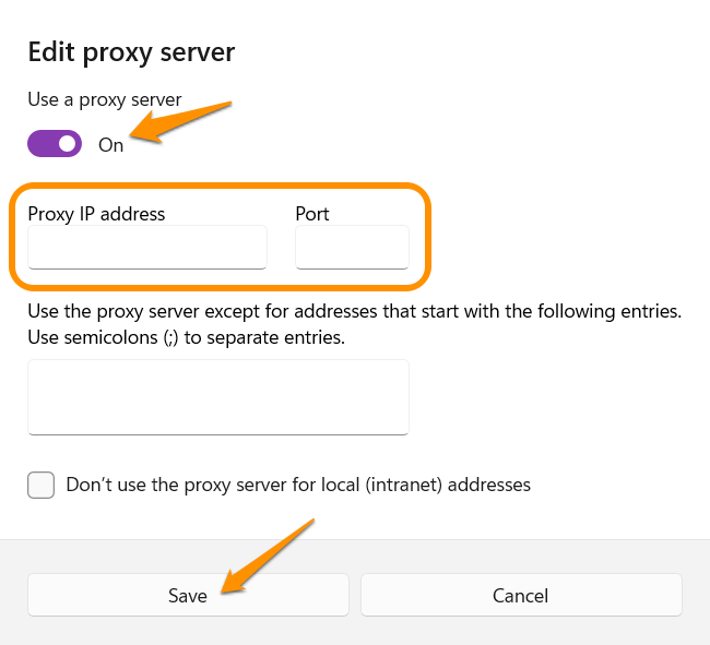 - हमारी ग्राहक सहायता टीम से प्राप्त प्रॉक्सी जानकारी दर्ज करें और "सेव" पर क्लिक करें।