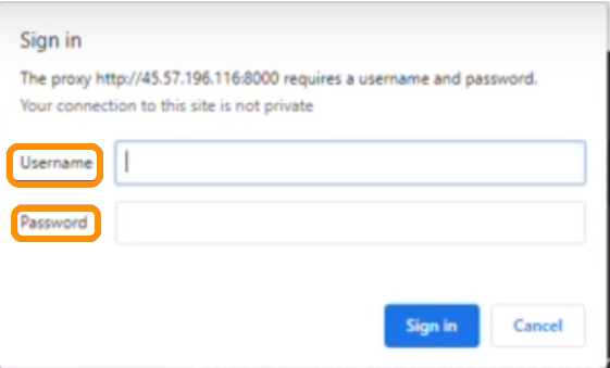 - अगला, अपने ब्राउज़र में उस उपयोगकर्ता नाम और पासवर्ड का उपयोग करके लॉग इन करें जो आपके प्रॉक्सी विवरण के साथ आया था।