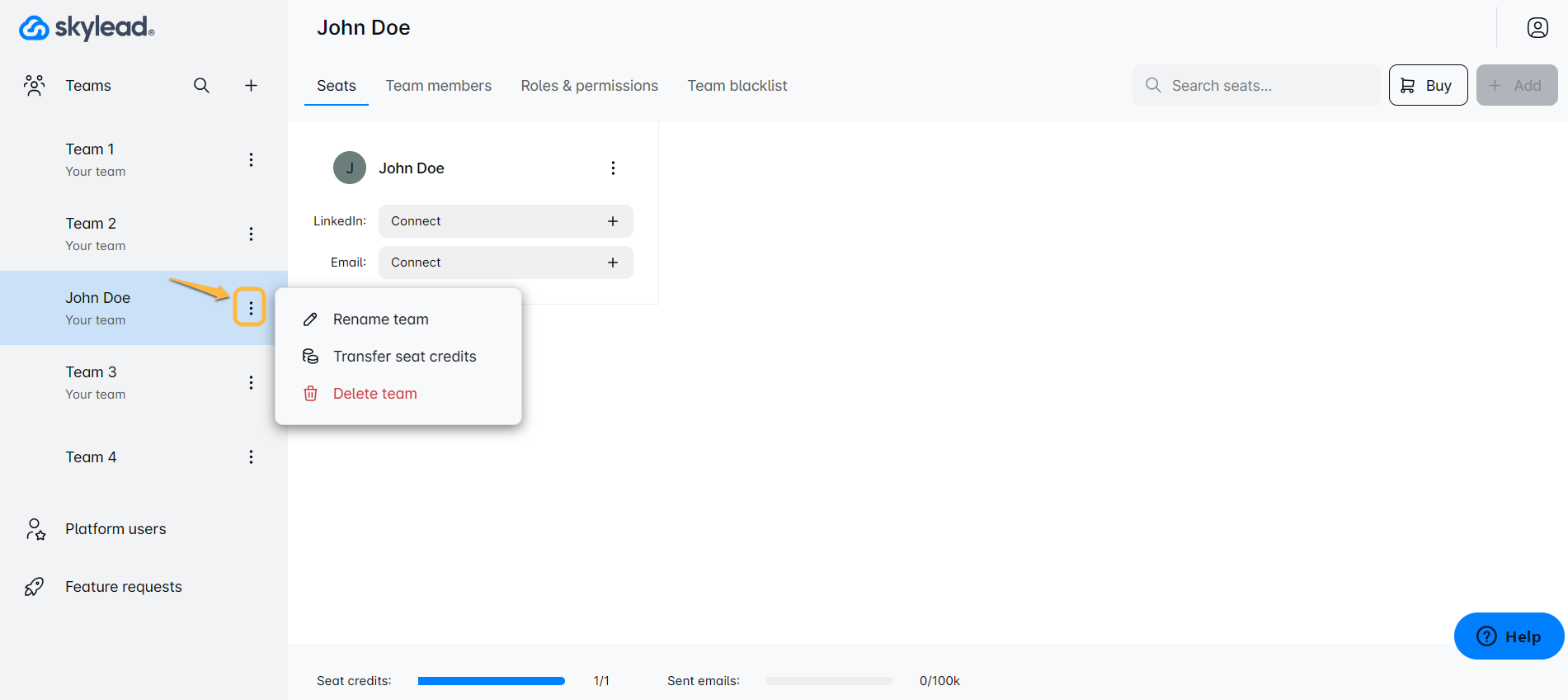 - सीट क्रेडिट ट्रांसफर करें: क्या आप अपनी टीम में अधिक सीटें जोड़ना चाहते हैं? यहां आप ऐसा कर सकते हैं।