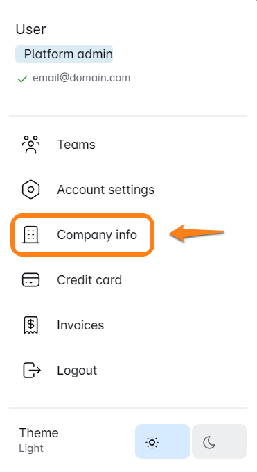 - ड्रॉपडाउन मेनू से, कंपनी जानकारी चुनें। यह आपको उस अनुभाग में ले जाएगा जहाँ आप अपनी सभी वर्तमान जानकारी देख सकते हैं।