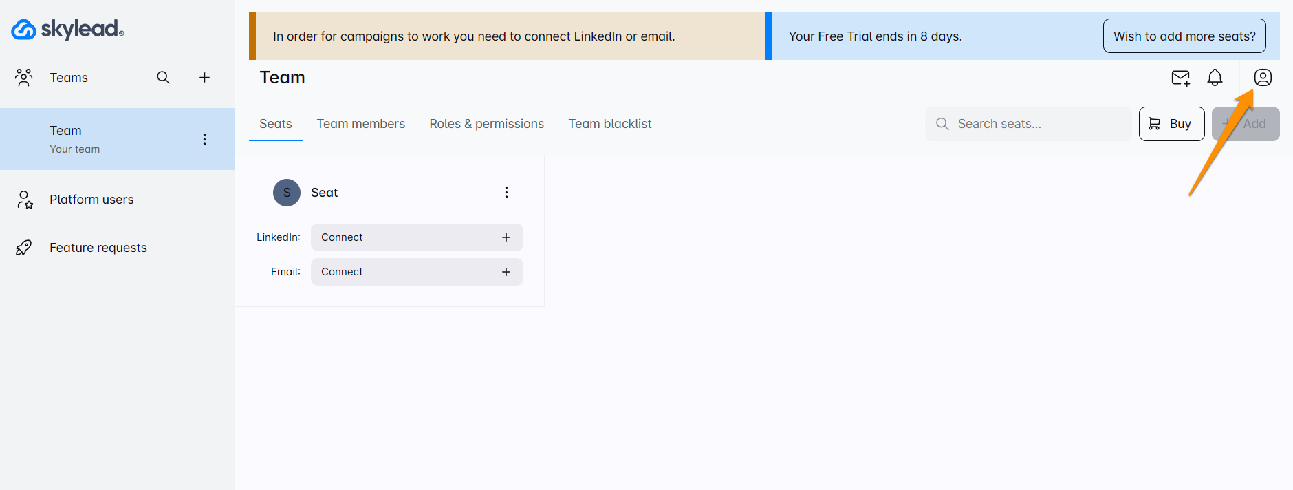- सबसे पहले, अपने डैशबोर्ड के ऊपरी दाएं कोने में खाता आइकन पर क्लिक करें।