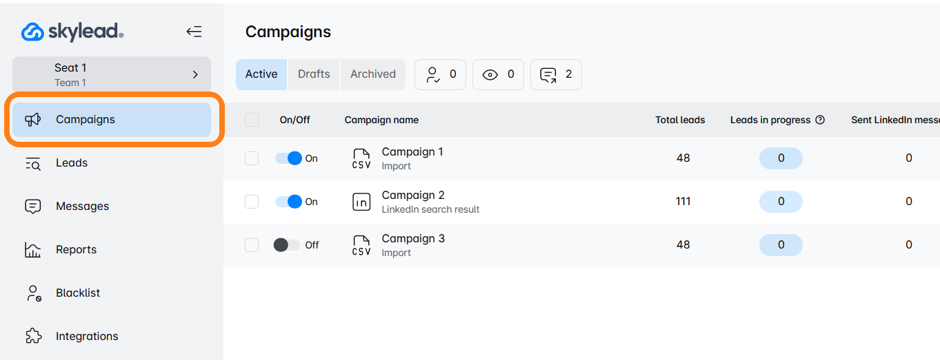 अपने Skylead खाते में लॉग इन करके Campaign Dashboard पर जाएं।