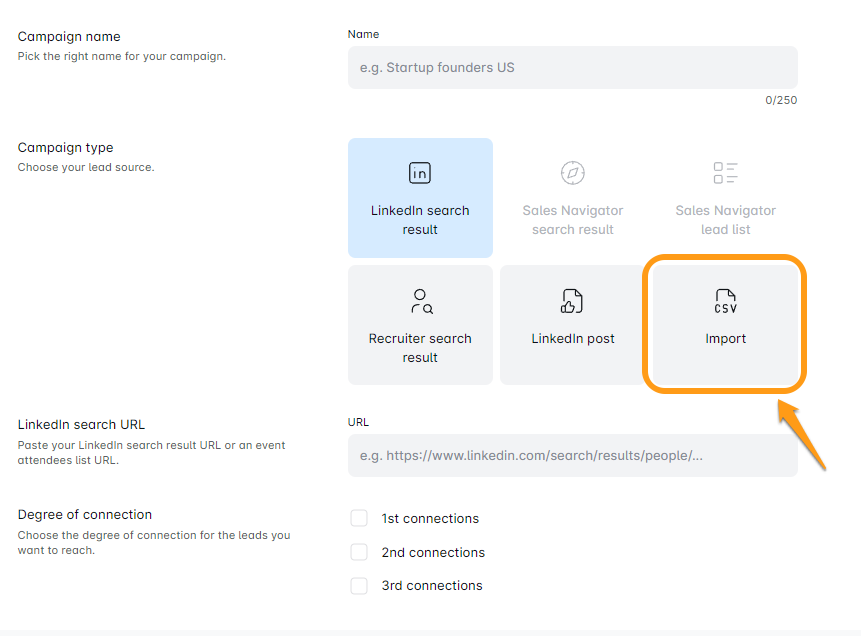 - URL स्वरूपण: LinkedIn अभियानों के लिए, सुनिश्चित करें कि LinkedIn URLs https://www.linkedin… से शुरू होते हैं। 🔗