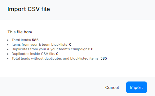 - डुप्लिकेट्स: आपकी टीम के अभियानों और CSV फ़ाइल के भीतर डुप्लिकेट की जाँच करें।
