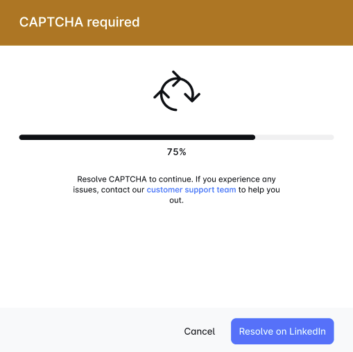 LinkedIn सेटअप करते समय CAPTCHA का सामना कर रहे हैं? 🧩 बस "Try by yourself" पर क्लिक करें, पहेली को हल करें, और सेटअप पूरा करने के लिए PIN दर्ज करें। यदि कोई समस्या आती है, तो हमारी समर्थन टीम मदद के लिए यहाँ है। हम आपके Skylead अनुभव को सहज बनाने के लिए समर्पित हैं। आनंद लें! 🚀