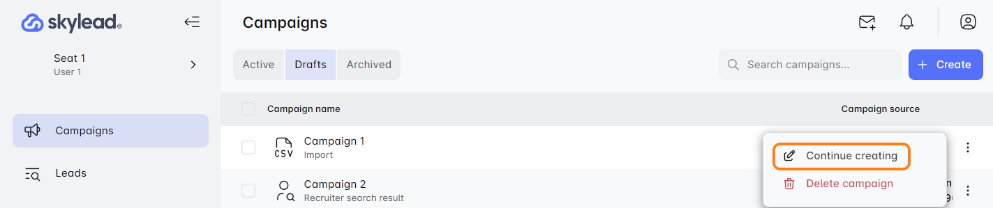 जानें कि कैसे Skylead की ड्राफ्ट कैंपेन फीचर आपके प्रगति को सुरक्षित रखती है ऑटो-सेव के साथ, ताकि आप कभी भी बिना चिंता के रोक और फिर से शुरू कर सकें। यह गाइड आपको ड्राफ्ट्स तक पहुंचने, CSV फाइलों को प्रबंधित करने और जब आप तैयार हों तब लॉन्च करने के बारे में बताती है। निर्बाध, कुशल कैंपेन प्रबंधन के लिए बिल्कुल सही—आत्मविश्वास के साथ कैंपेन बनाने के लिए तैयार हो जाइए! 🚀🌟