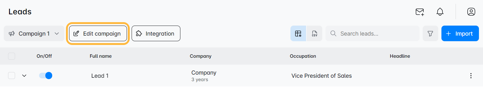 - उस अभियान को खोजें जहां आप नए लीड्स चाहते हैं।