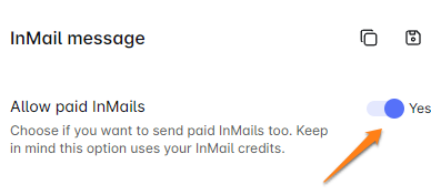 यहां चीजें वास्तव में दिलचस्प हो जाती हैं: Skylead का स्मार्ट सीक्वेंस आपको भुगतान और मुफ्त InMails को आसानी से मिलाने देता है। हमारा चतुर एल्गोरिदम ओपन प्रोफाइल उपयोगकर्ताओं और उन लोगों के बीच अंतर करता है जो केवल भुगतान InMails प्राप्त कर सकते हैं। प्लेटफॉर्म में "भुगतान InMails की अनुमति दें" बटन को टॉगल करके, आप स्मार्ट सीक्वेंस को आपके लिए सबसे अच्छा निर्णय लेने की अनुमति देते हैं, यह सुनिश्चित करते हुए कि आप हमेशा अपने लीड के लिए सबसे कुशल रास्ते पर हैं।