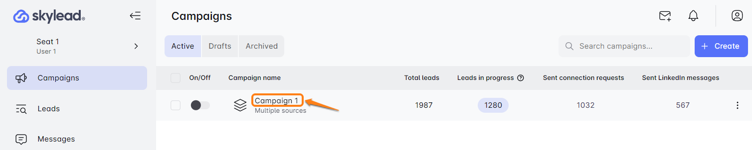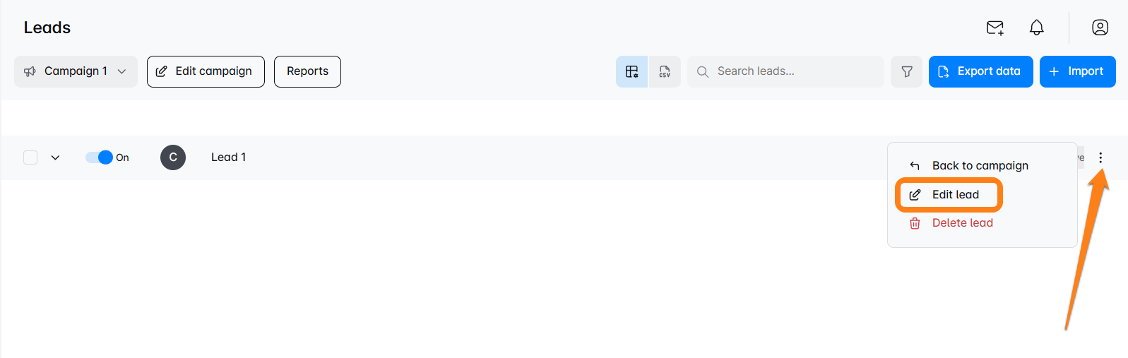 - अपने अभियान के नाम पर क्लिक करके शुरू करें या लीड सूची पृष्ठ पर जाएं और उस अभियान का चयन करें जिसे आप एडिट करना चाहते हैं। यह बस एक क्लिक दूर है! 🖱️