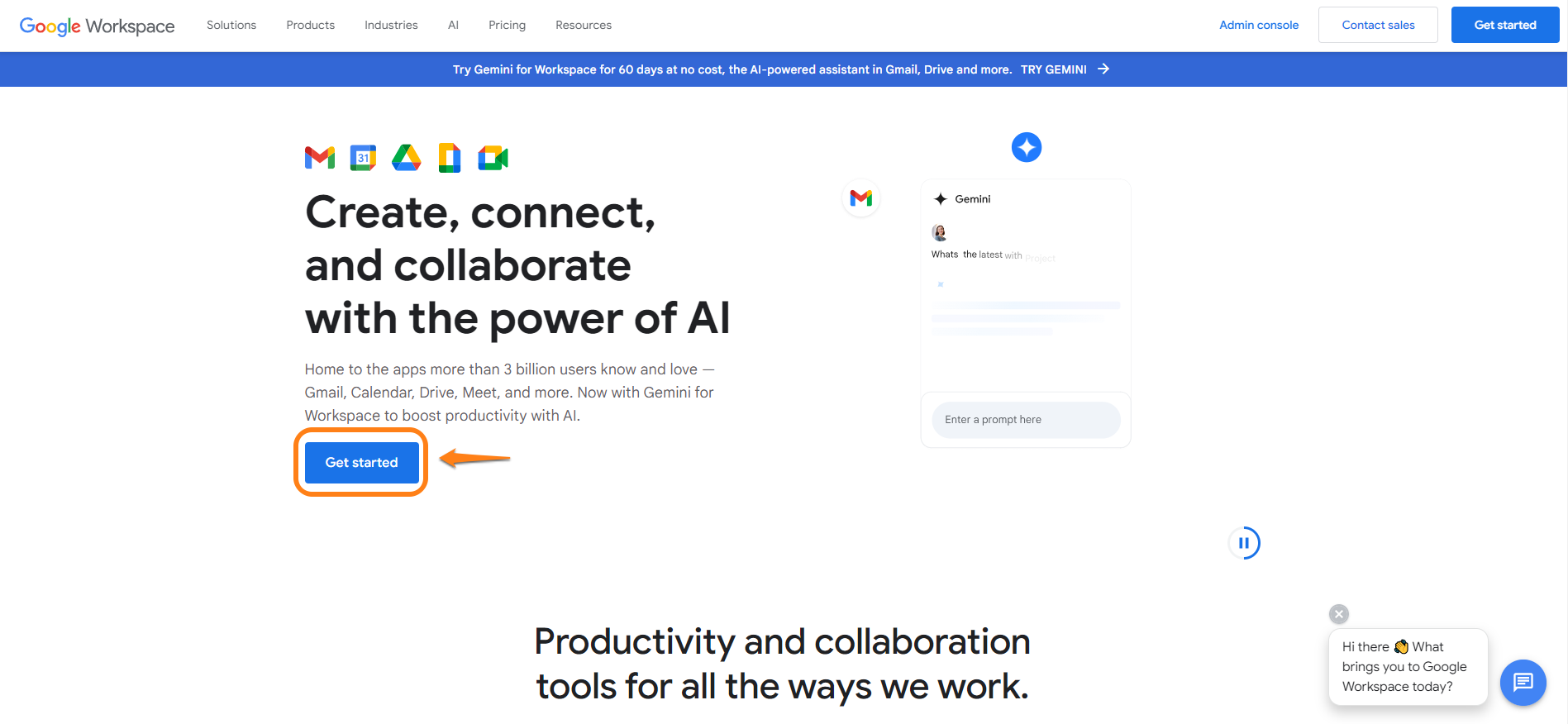 Untuk panduan ini, kami akan menggunakan Google Workspace, dan alurnya mirip dengan semua ruang kerja lainnya. Untuk memulai, klik "Mulai" dan tambahkan informasi pendaftaran.