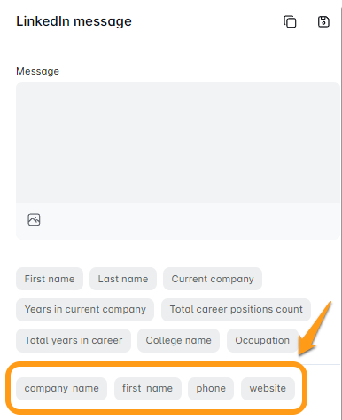 For e-postkampanjer, og hvis du vil at Skylead skal vise navn på potensielle kunder rett etter opplasting, bruk våre native variabler: firstName og lastName.