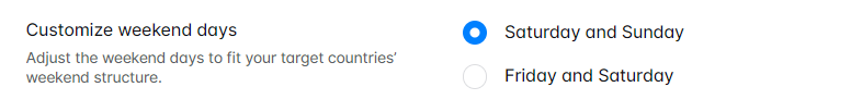 Você também pode selecionar quais dias de fim de semana se alinham com o cronograma do seu público-alvo! 🌍