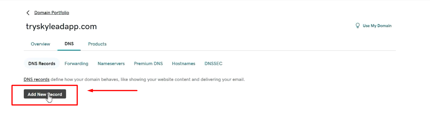 🔔 För GoDaddy, gå till Domäner>Portfölj>DNS>DNS-poster.