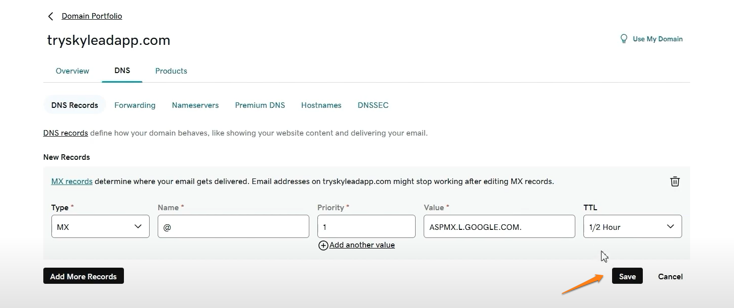 4. Lägg till MX-poster för Gmail -