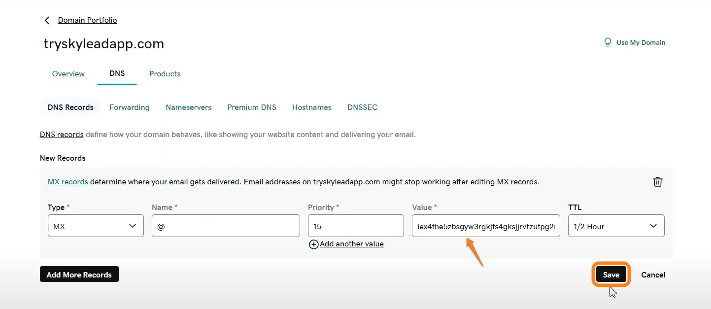 🔔 Så här ska det se ut när du lägger till din MX-post i GoDaddy.