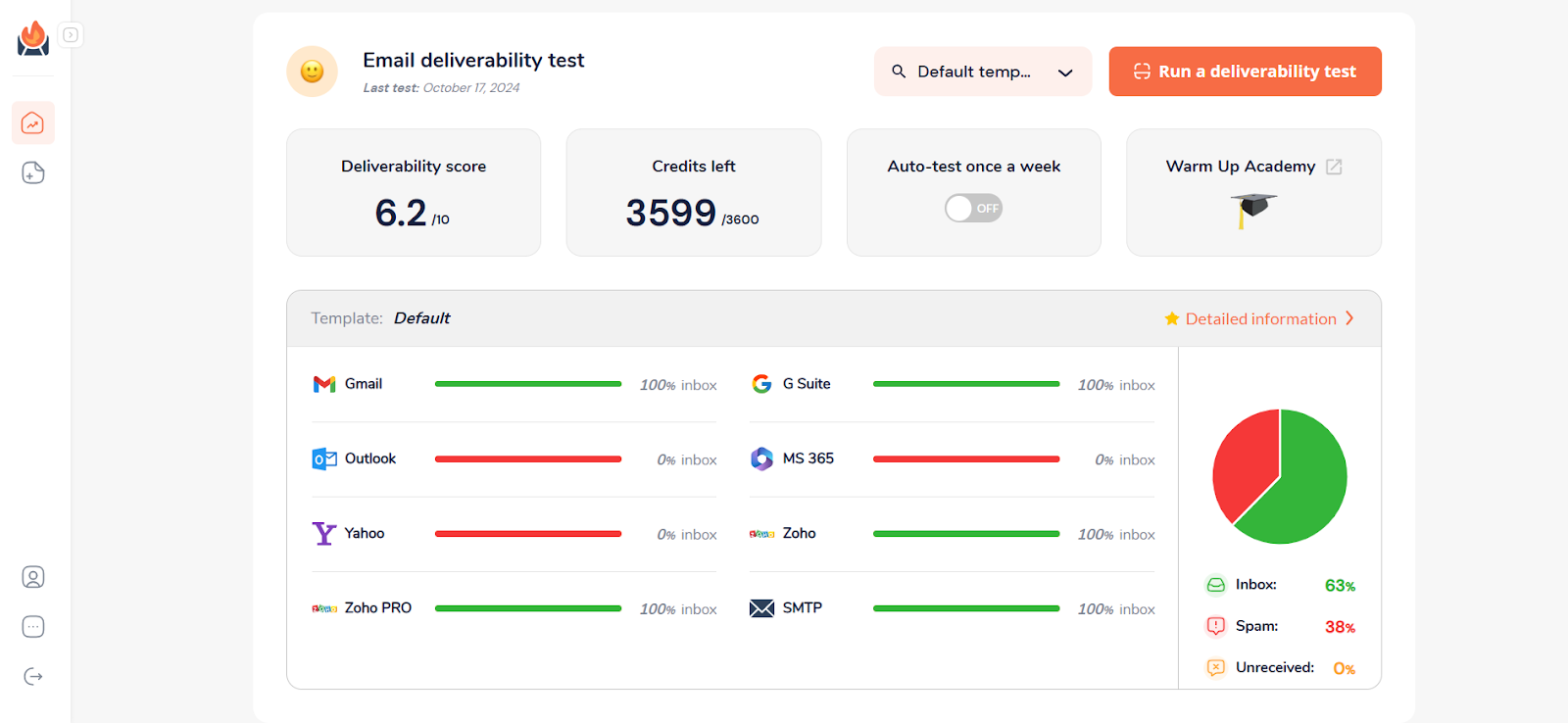 5. Kör leveranstester så att du kan kontrollera om din uppvärmningsstrategi fungerar eller inte. Du kan anpassa dina mallar och ladda ner en PDF-leveransrapport.