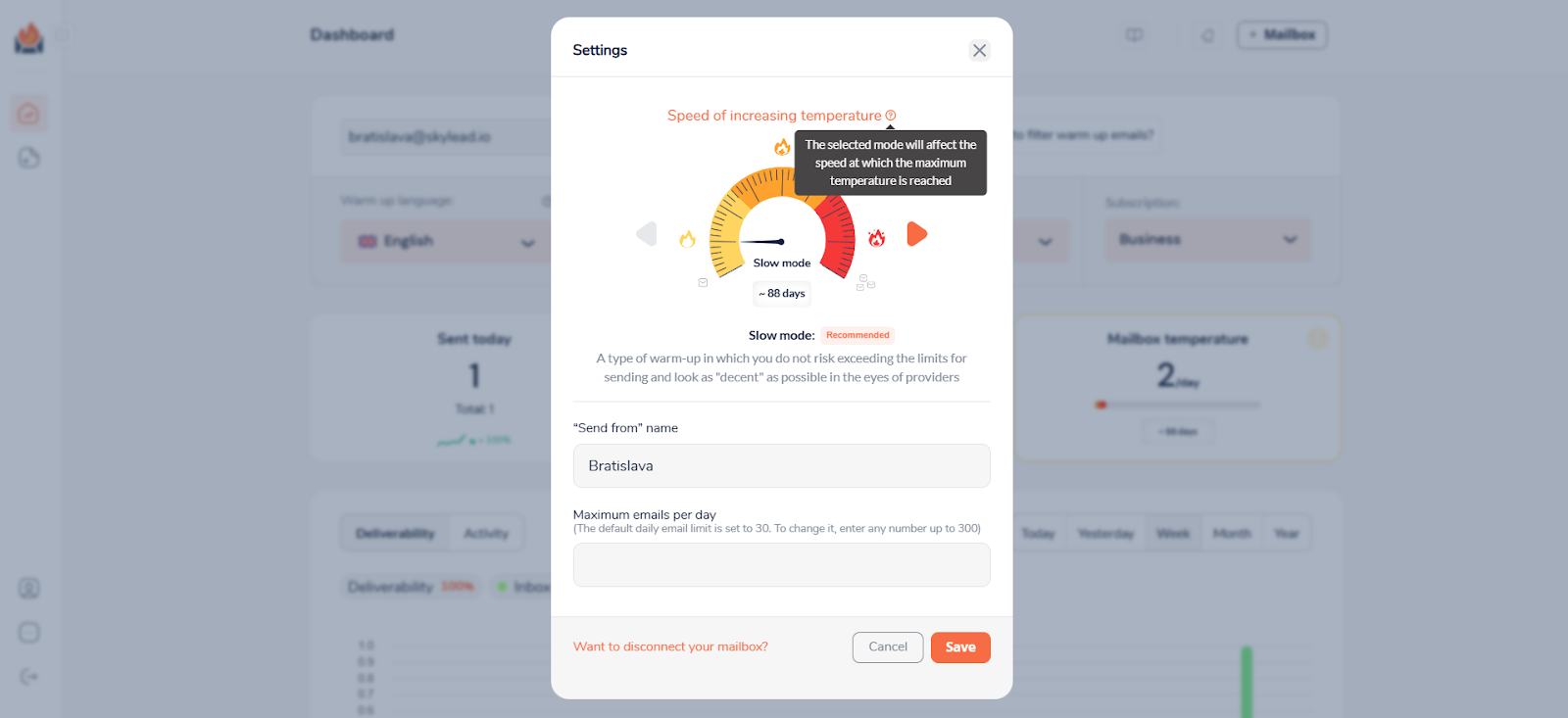1. Gå till Inställningar för att ställa in temperaturen på din uppvärmningsprocess. Beroende på vilken temperatur du väljer, kommer verktyget att skicka olika mängder e-post under olika tidsperioder. Du kommer att ha standardinställningar för varje temperatur, men du kan också ställa in dem själv. 🔥