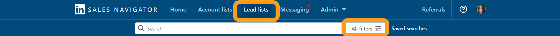 - Öncelikle—Sales Navigator'ı açın ve Potansiyel Müşteri Listenizi oluşturmaya başlamak için "Listeler"'e tıklayın.